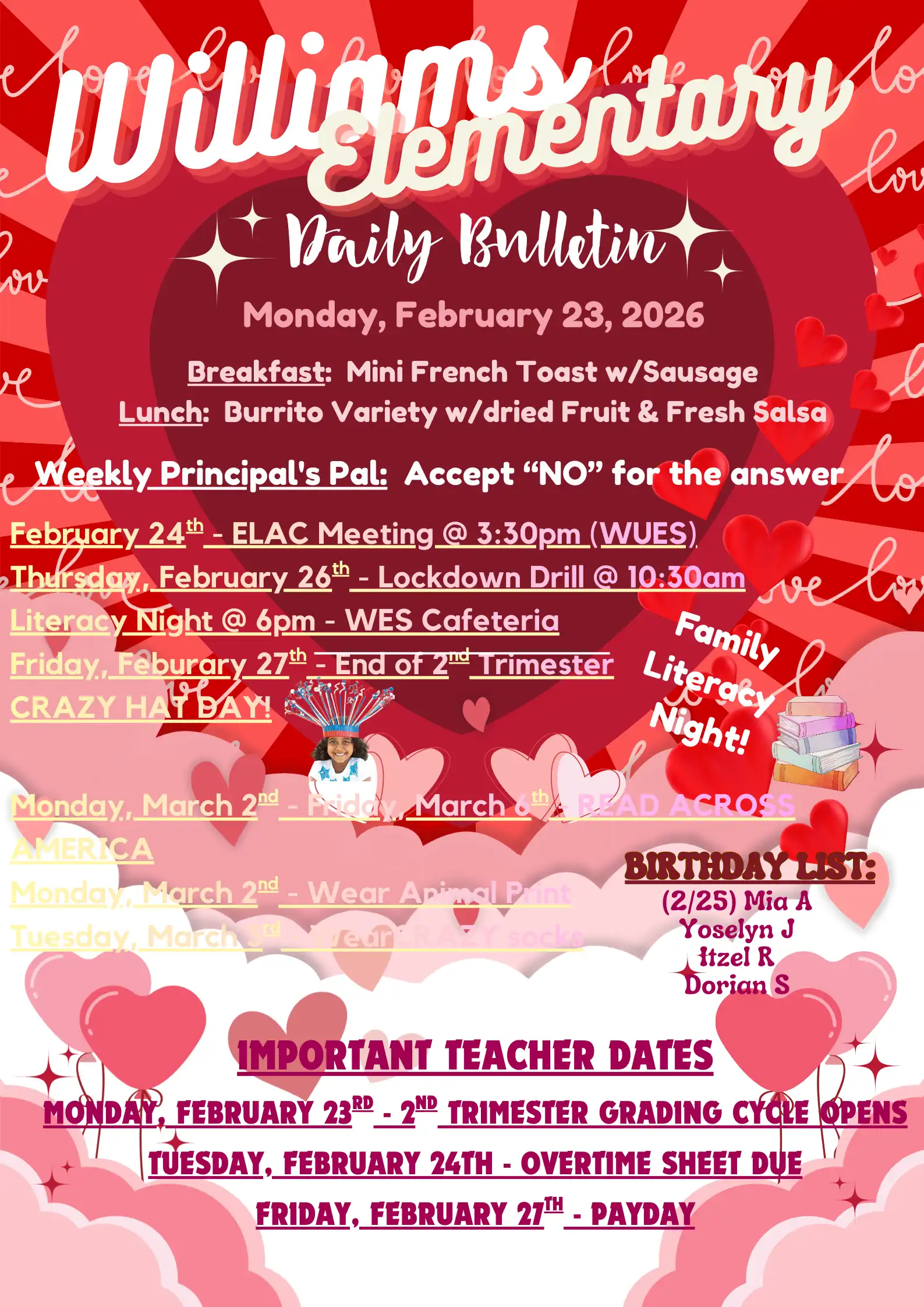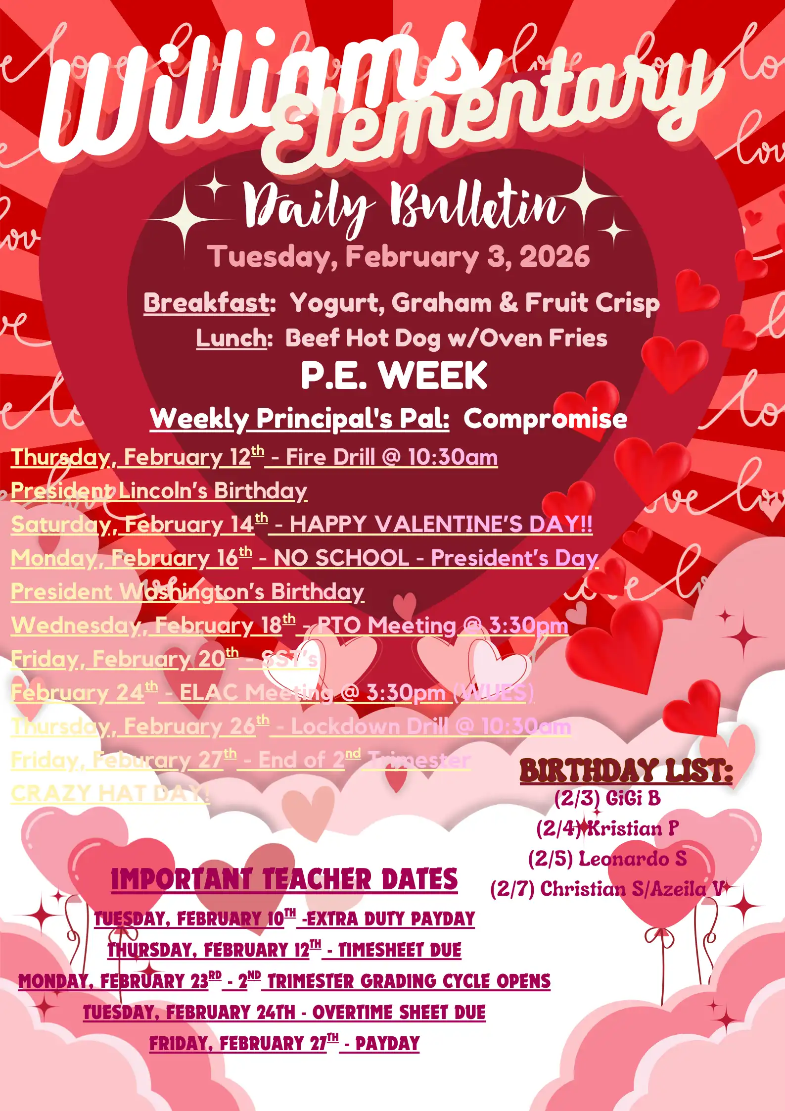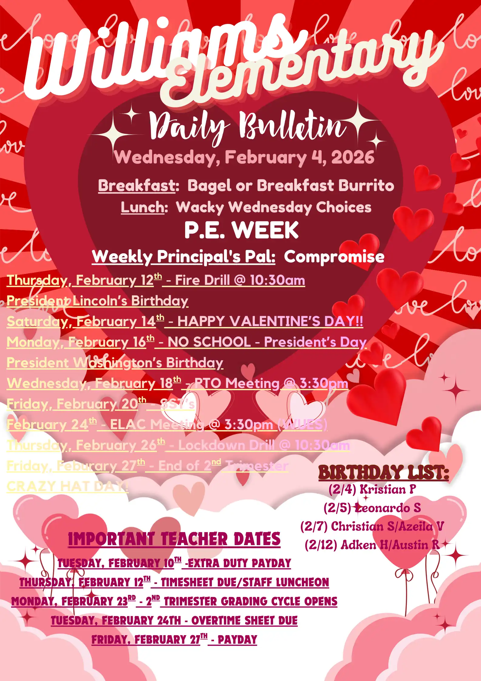 The Williams Unified School District, in collaboration with their students, parents, educators, and the community is committed to providing all students with a sense of belonging and a meaningful education that prepares them to be contributing members of a multi-ethnic, multi -cultural society.